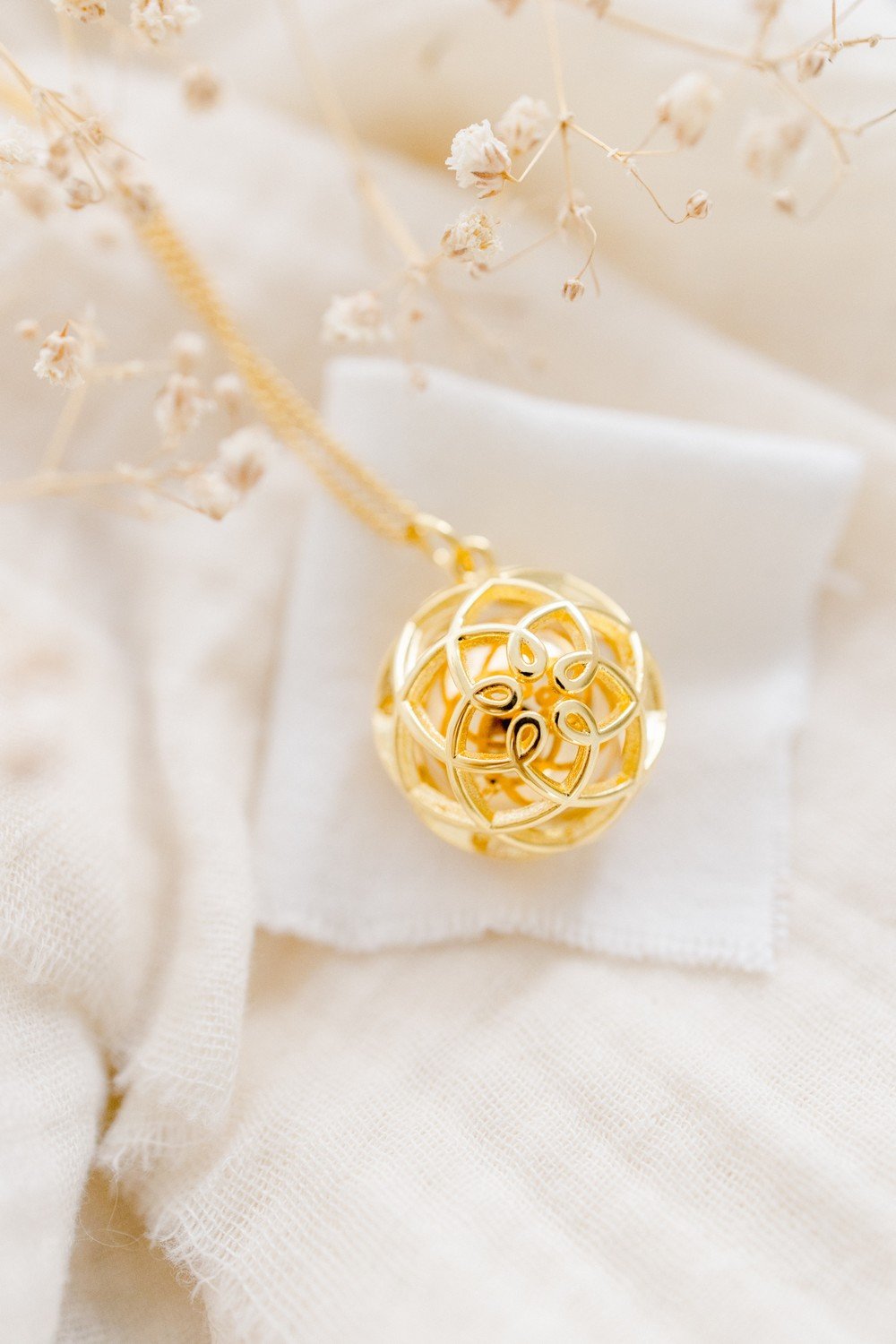 La collection de bolas de grossesse Pleine Lune célèbre la douceur et la poésie de la maternité. Chaque bola, au design épuré et aux lignes pures, est délicatement travaillé pour offrir un son subtil et apaisant, qui accompagne le bébé dans ses premiers mouvements. Les charms fins et délicats ajoutent une touche de raffinement, faisant de chaque bola une pièce unique, pensée pour créer un lien tendre et sensoriel entre la future maman et son tout-petit.