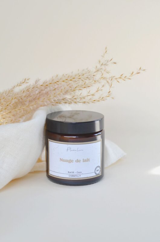 - Au beurre de karité : utilisé depuis des millénaires par les femmes africaines, riche en vitamines A et E, il hydrate en profondeur et améliore l’élasticité de votre peau.