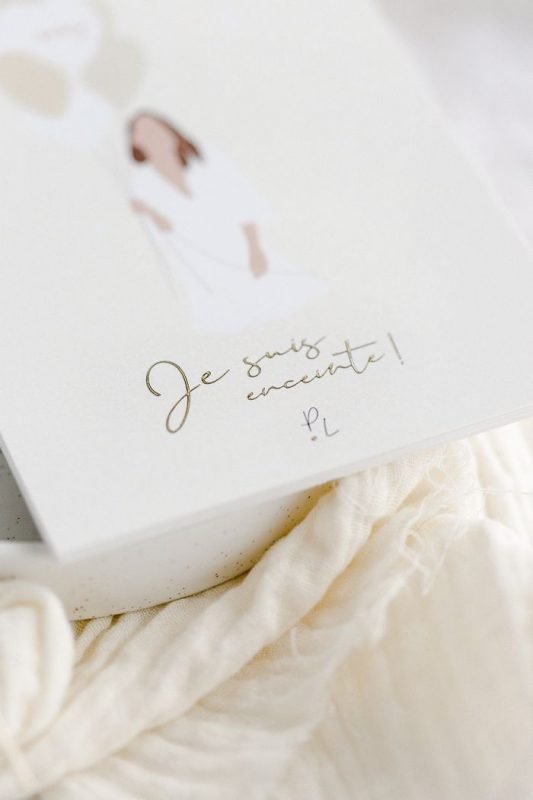 Une invitation, tout le monde croira à l’annonce de votre mariage, mais en lisant jusqu’au bout, ils comprendront qu’ils sont invités à la maternité pour la date du terme. On peut aussi le faire sous forme de cocotte en papier pour rendre ça plus drôle.