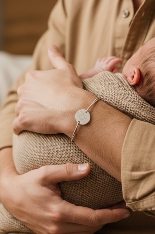 Beaucoup d’hommes n’osent pas exprimer toute l’émotion ressentie à la naissance. Un bracelet homme naissance bébé permet de matérialiser ce lien avec pudeur et élégance.