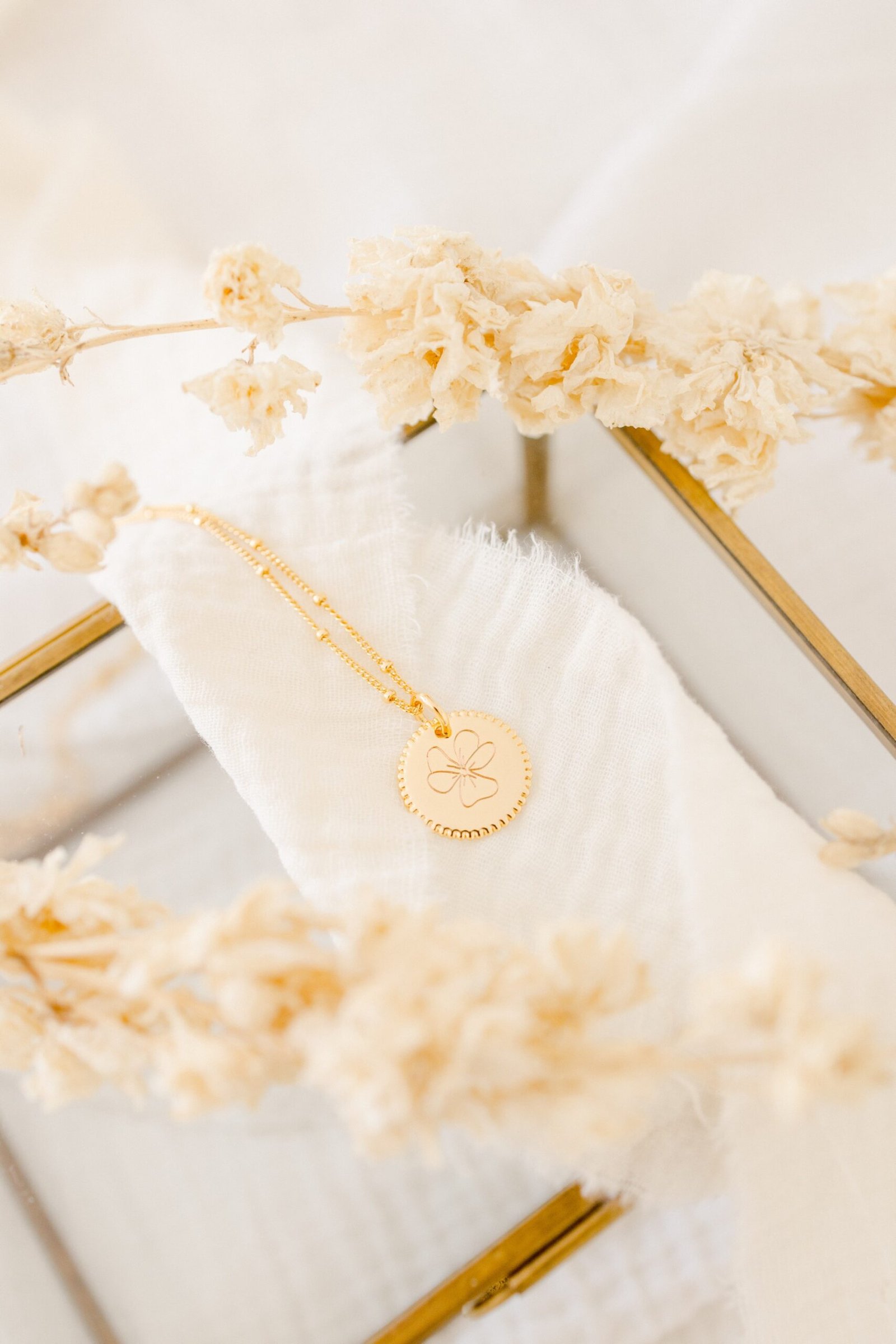 Chaque collier ou bracelet de la collection ECLOSION représente la fleur associée à un mois de naissance, délicatement gravée sur une médaille en argent ou dorée à l’or fin. Grâce à la personnalisation, ces bijoux deviennent de véritables talismans, à offrir ou à porter pour célébrer une naissance, un anniversaire ou un lien unique.