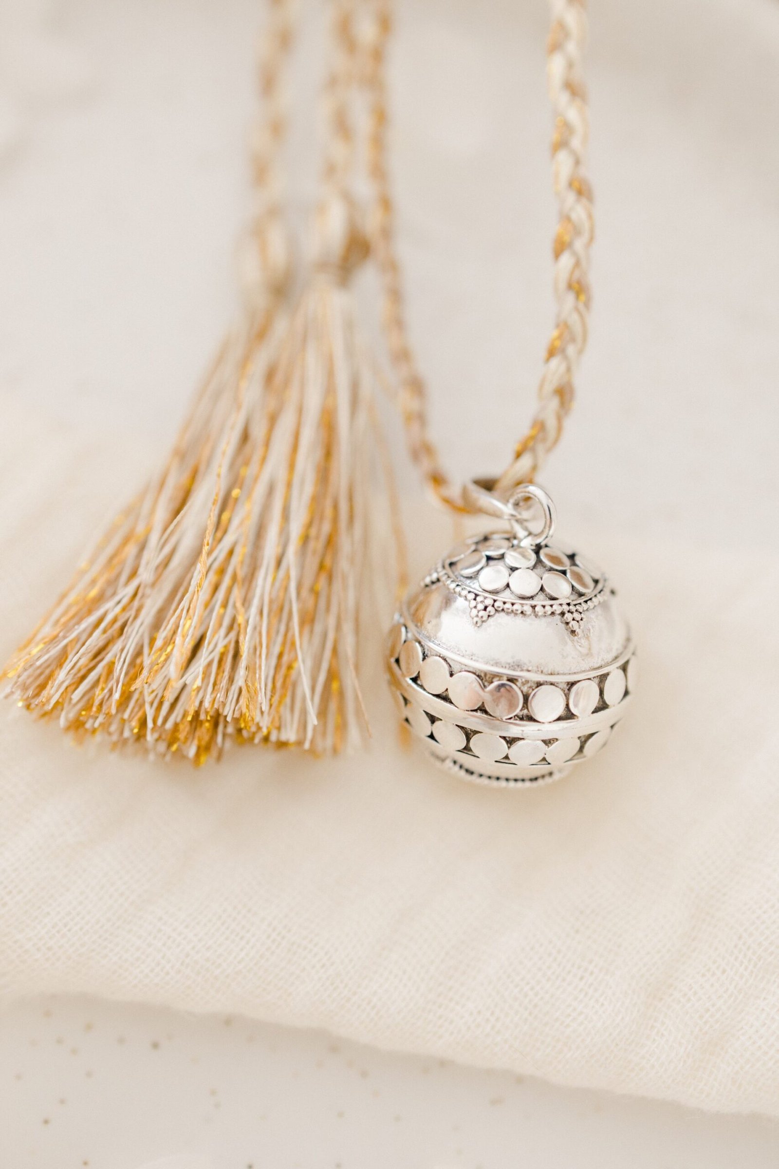 Notre bola de grossesse Bali couronne en argent massif a été confectionné à la main par un artisan balinais ce qui en fait une création unique et authentique.