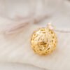 La sphère de notre bola de grossesse Canopée recouverte d’or 18 carats ou d’argent s’enveloppe de son feuillage majestueux. Ancré dans la Terre, ouvert vers le ciel, l’arbre est un puissant symbole du cycle de la vie.