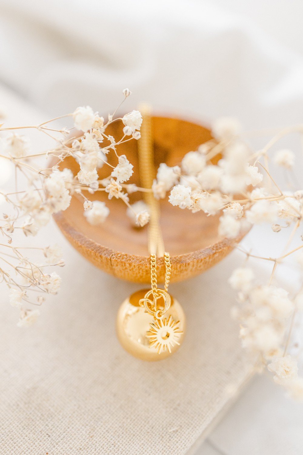Notre bola de grossesse Charm soleil doré à l’or fin 18 carats ou plaqué argent célèbre la future maman et son tout-petit. Tissez un lien unique avec votre bébé grâce à la douce mélodie de ce bijou de grossesse. Son délicat pendentif soleil symbolise le pouvoir de la création.