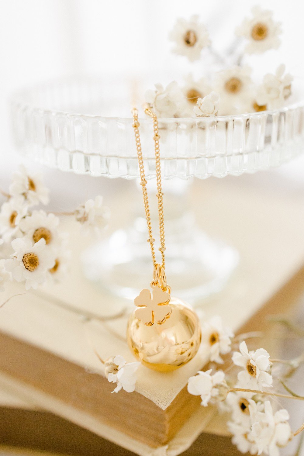 Sur notre bola de grossesse Gri-Gri le symbole du trèfle à quatre feuilles, un charm porte-bonheur.