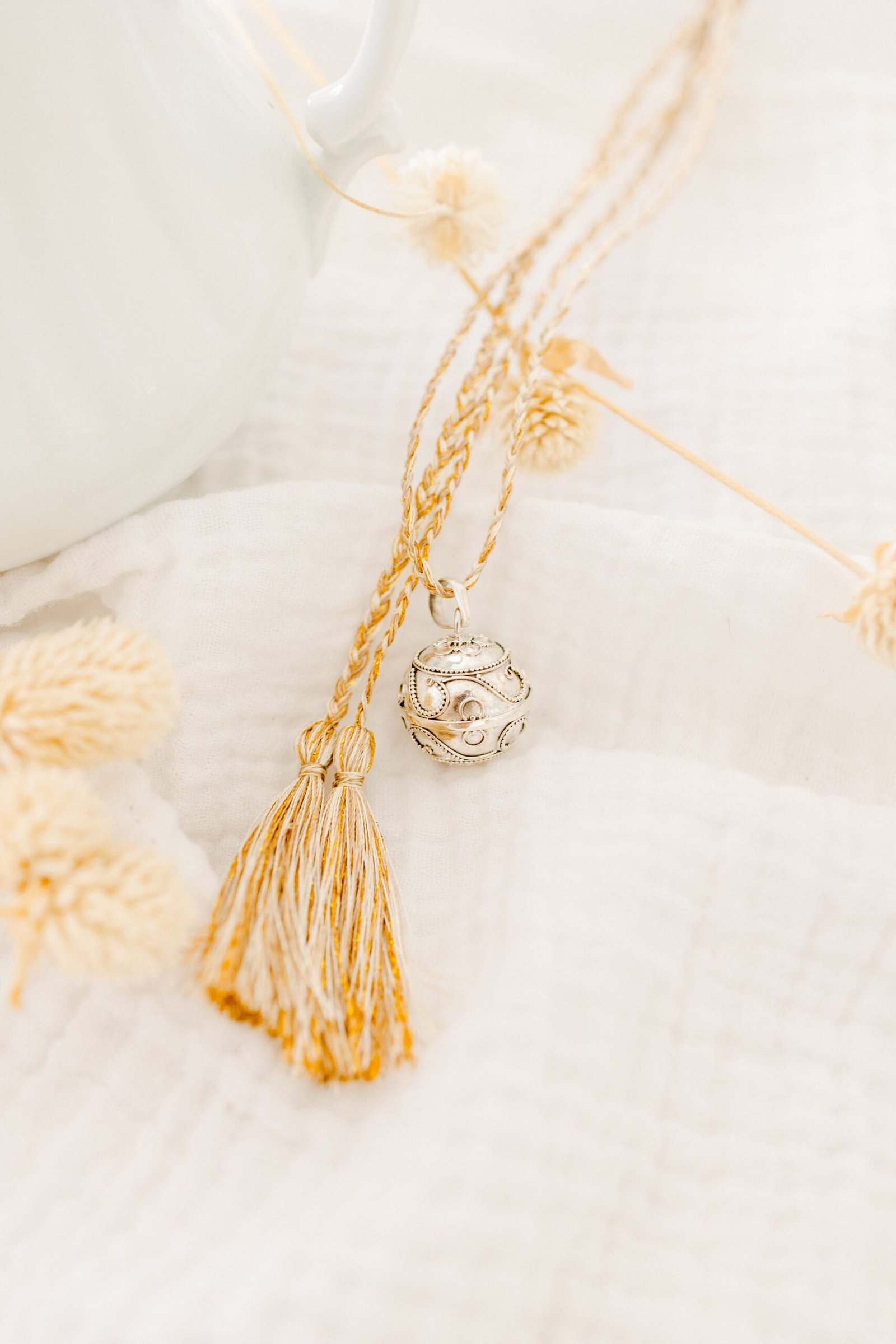 Notre bola de grossesse Bali élégance en argent massif a été confectionné à la main par un artisan balinais ce qui en fait une création unique et authentique.
