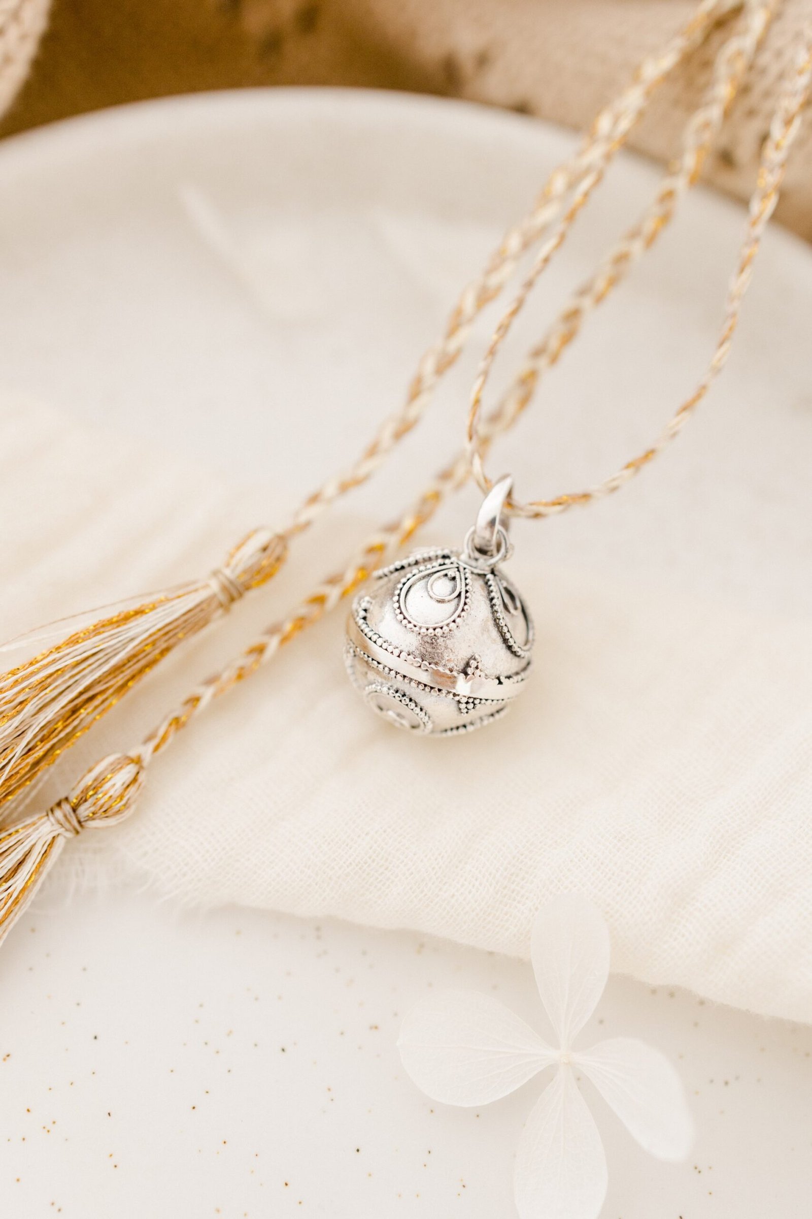 Notre bola de grossesse indonésien Bali senteur en argent massif a été confectionné à la main par un artisan balinais ce qui en fait une création unique et authentique.