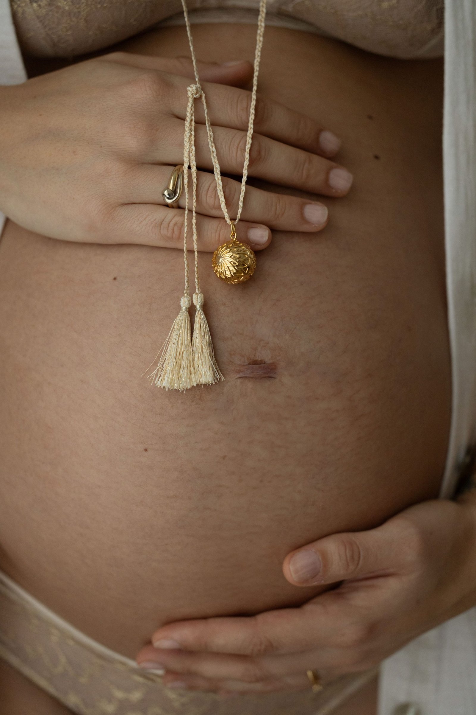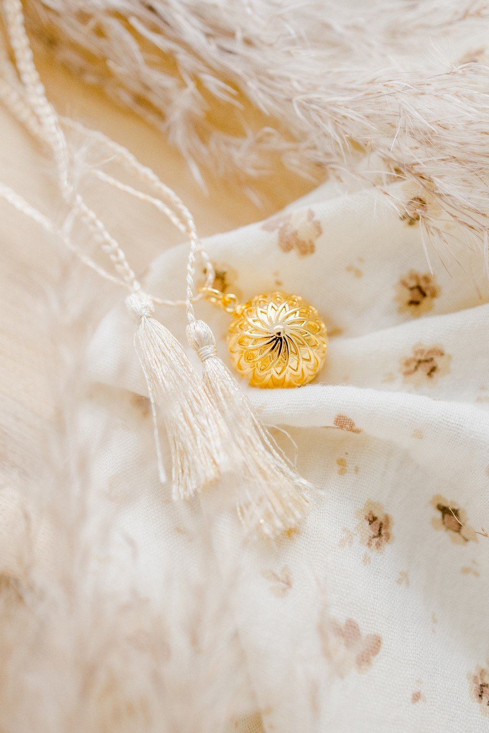 - Pendentif sonore gravé d’un motif mandala recouverte d’or 18 carats ou d’argent