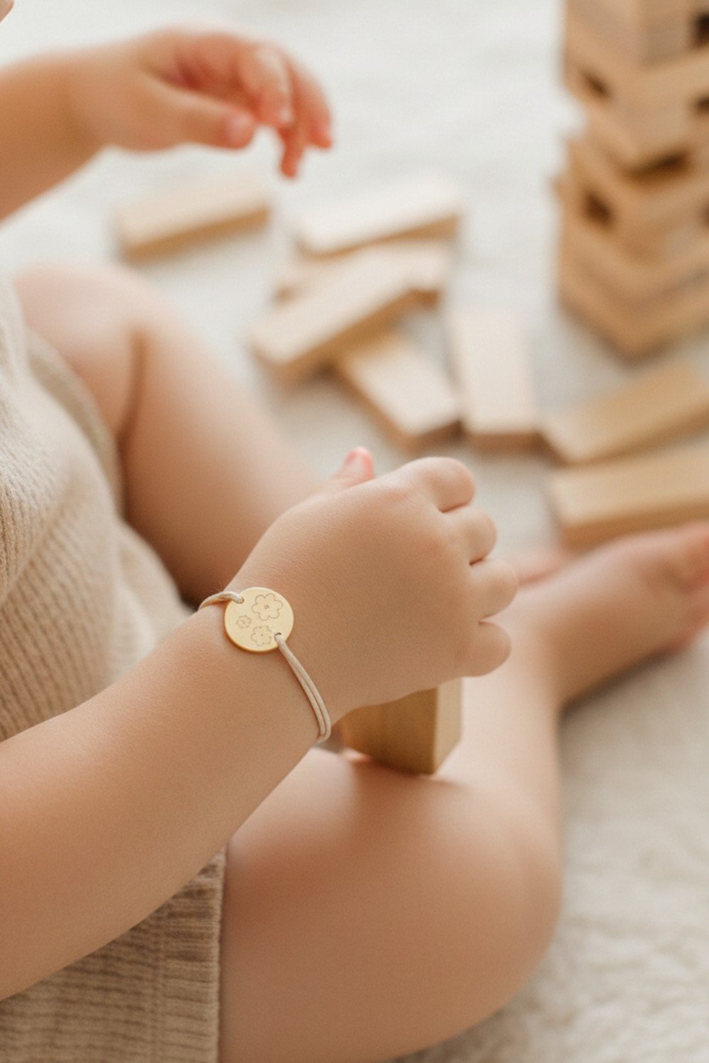 Bracelet de baptême enfant cordon médaille gravée PÂQUERETTE à personnaliser