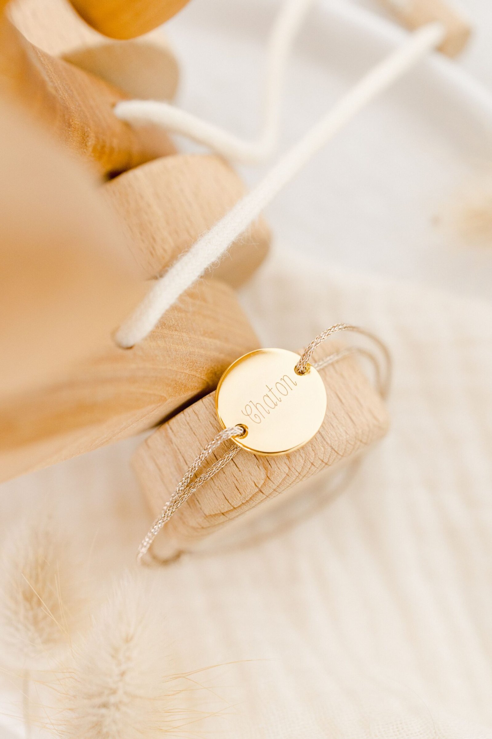 Bracelet pastille or cordon ÉPURE pour baptême à personnaliser