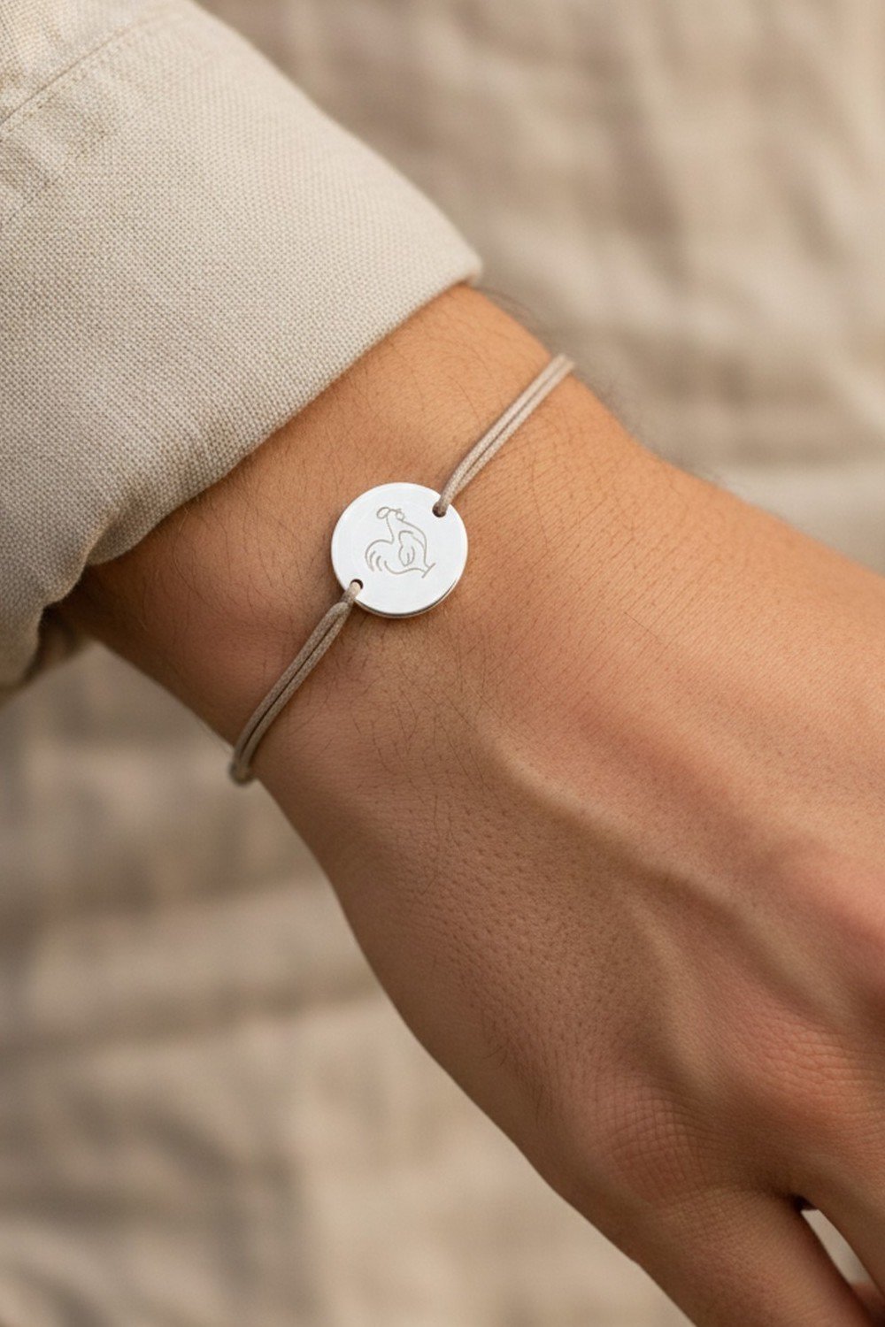Bracelet personnalisé cordon ajustable argent gravé PAPA POULE