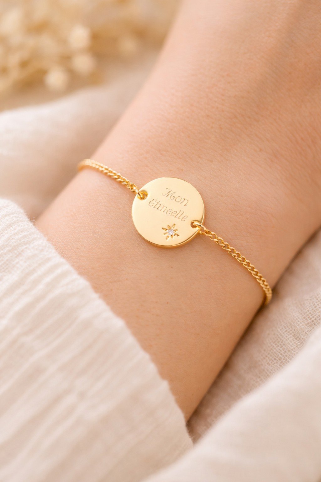 Bracelet personnalisé pastille oxyde de zirconium chaine or MON ETINCELLE