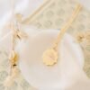 - Médaille ovale au contour travaillé 18 mm recouverte d’or 18 carats
