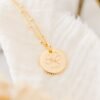 - Médaille ronde au contour perlé 18 mm recouverte d’or 18 carats