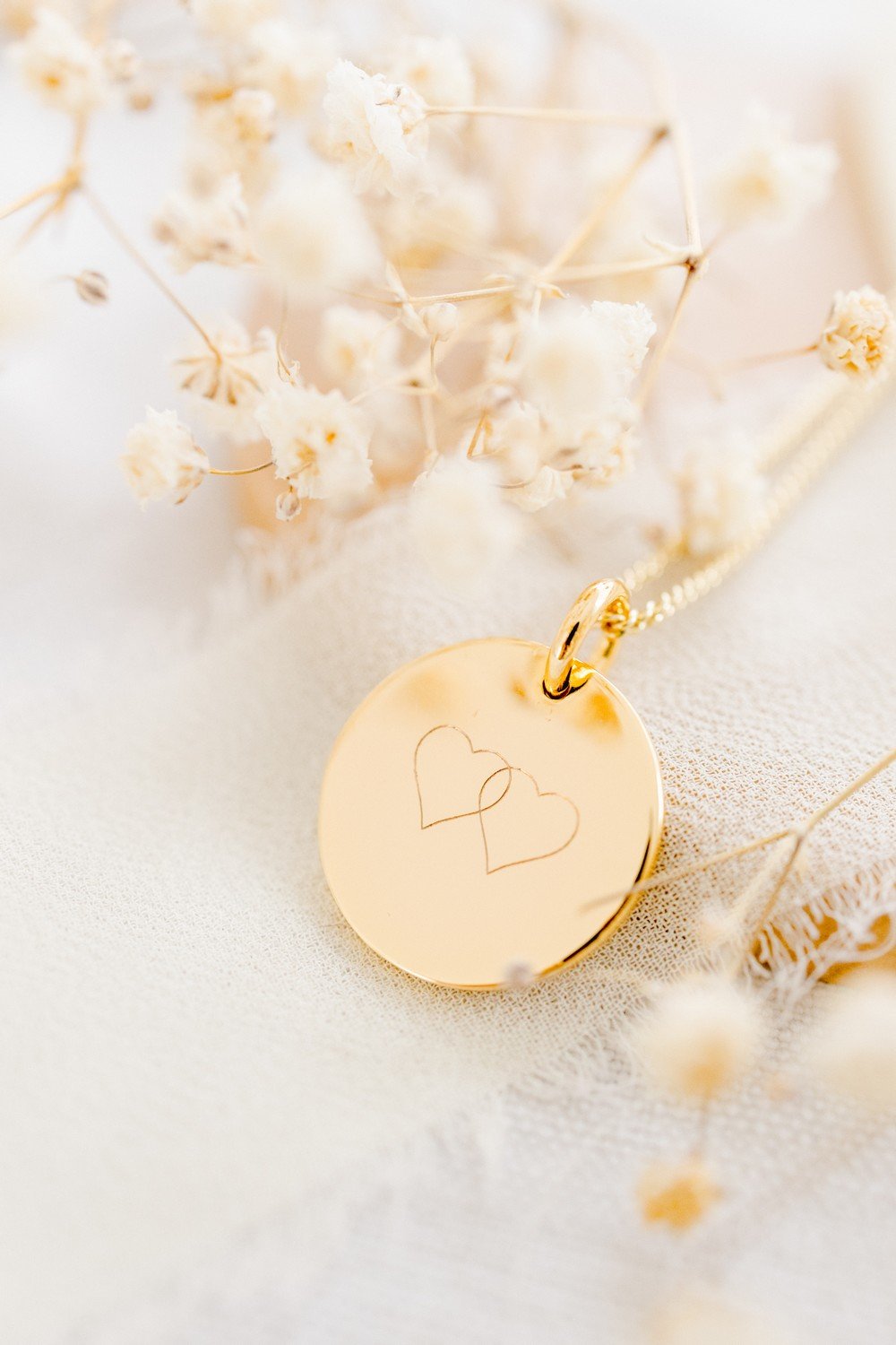 Sur notre pendentif personnalisé Coeur à coeur recouvert d’or 18 carats repose deux cœurs entrelacés évoquant l’amour entre deux êtres. Ce bijou se personnalise avec vos précieux mots doux.