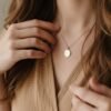 Notre pendentif personnalisé Florale au contour délicatement travaillé et doré à l’or fin 18 carats se personnalise avec un prénom, une date de naissance, des initiales ou tout autre mot d’amour.