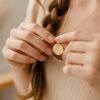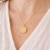 Notre pendentif personnalisé délicatement martelé recouvert d’or 18 carats évoque l’astre lunaire. Il se personnalise avec vos précieux mots doux : prénoms, date, initiales ou tout autre mot d’amour.