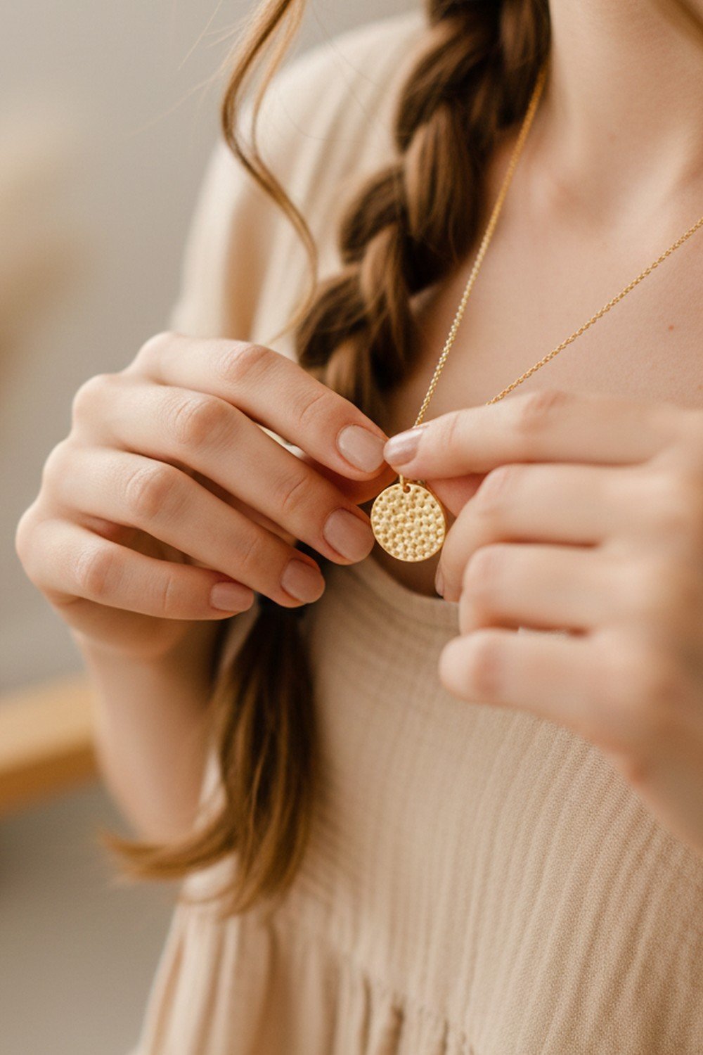 - Médaille martelée 18mm recouverte d’or 18 carats