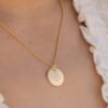 - Médaille ronde perlée 18 mm recouverte d’or 18 carats