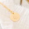 Notre petit pendentif personnalisé délicatement martelé recouvert d’or 18 carats évoque l’astre lunaire. Il se personnalise avec un prénom, une date de naissance, un poids ou tout autre mot d’amour.