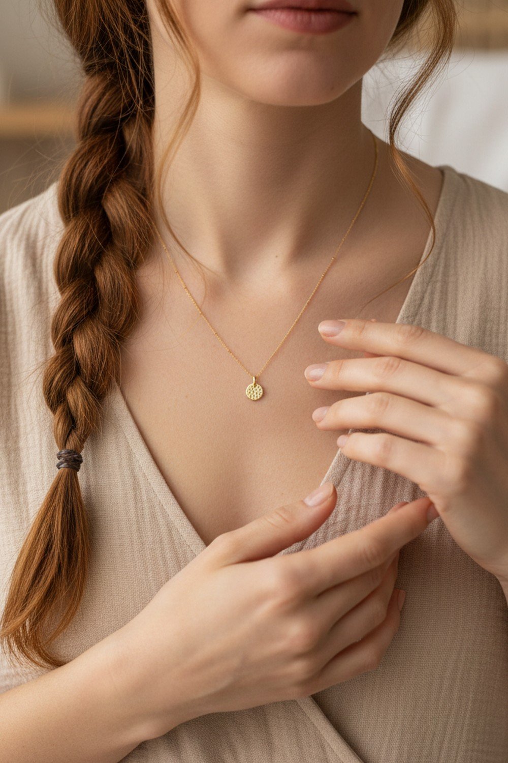 - Mini médaille martelée 10 mm recouverte d’or 18 carats