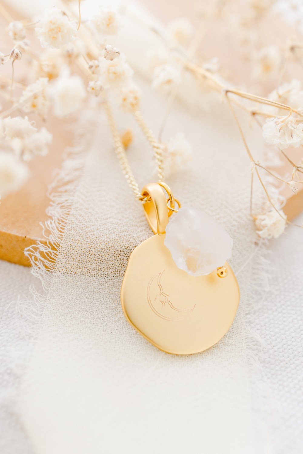Gardez ce souvenir si précieux qu’est votre naissance, celle d’un enfant ou d’un être cher avec notre collier pierre de naissance Moon recouvert d’or 18 carats.