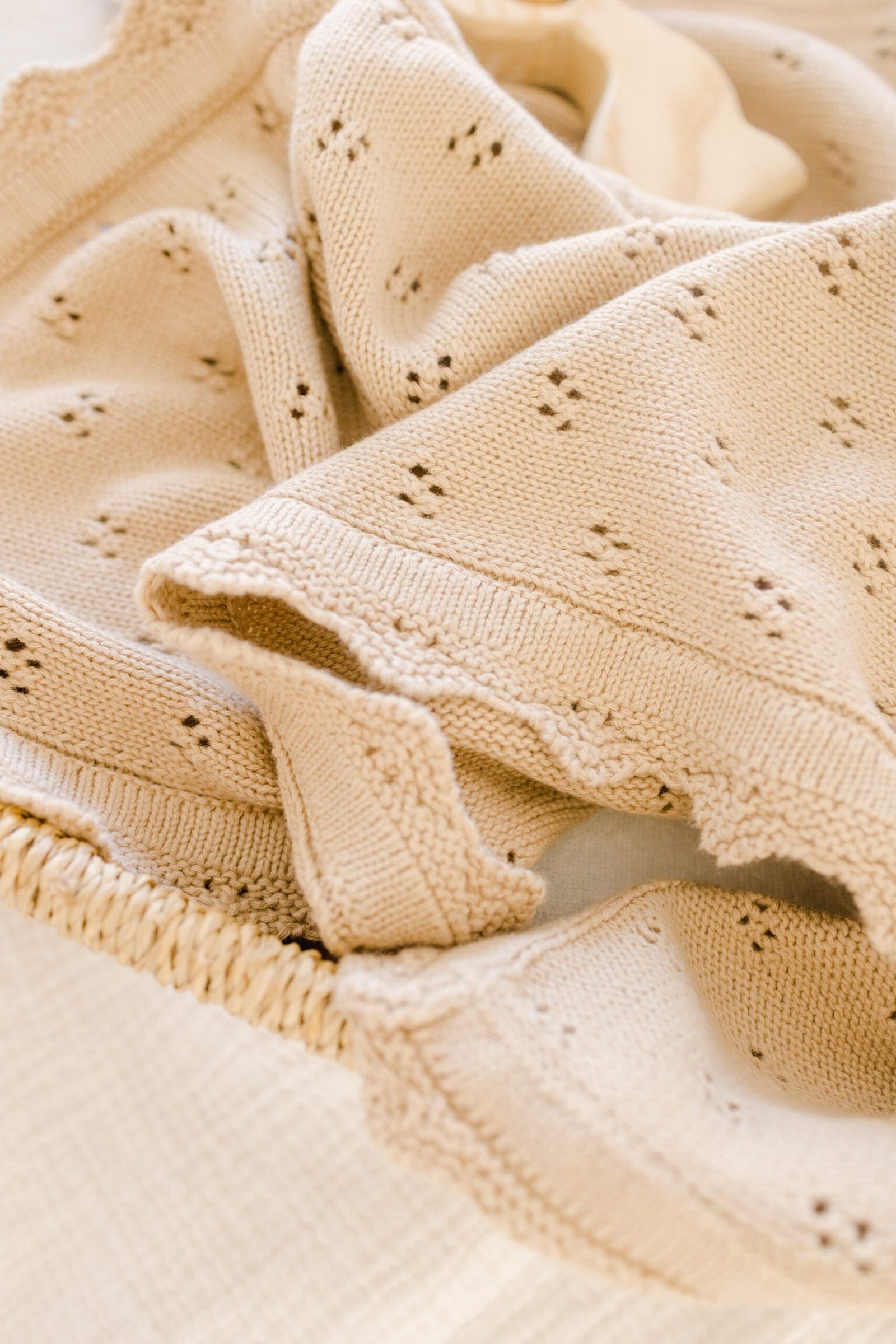 Tout en délicatesse, cette grande couverture de naissance tricotée réchauffera et protègera votre bébé dès sa naissance et tout au long de ses premiers mois. Confectionnée en coton, adaptée à la peau délicate de bébé. Un indispensable du trousseau de naissance.