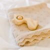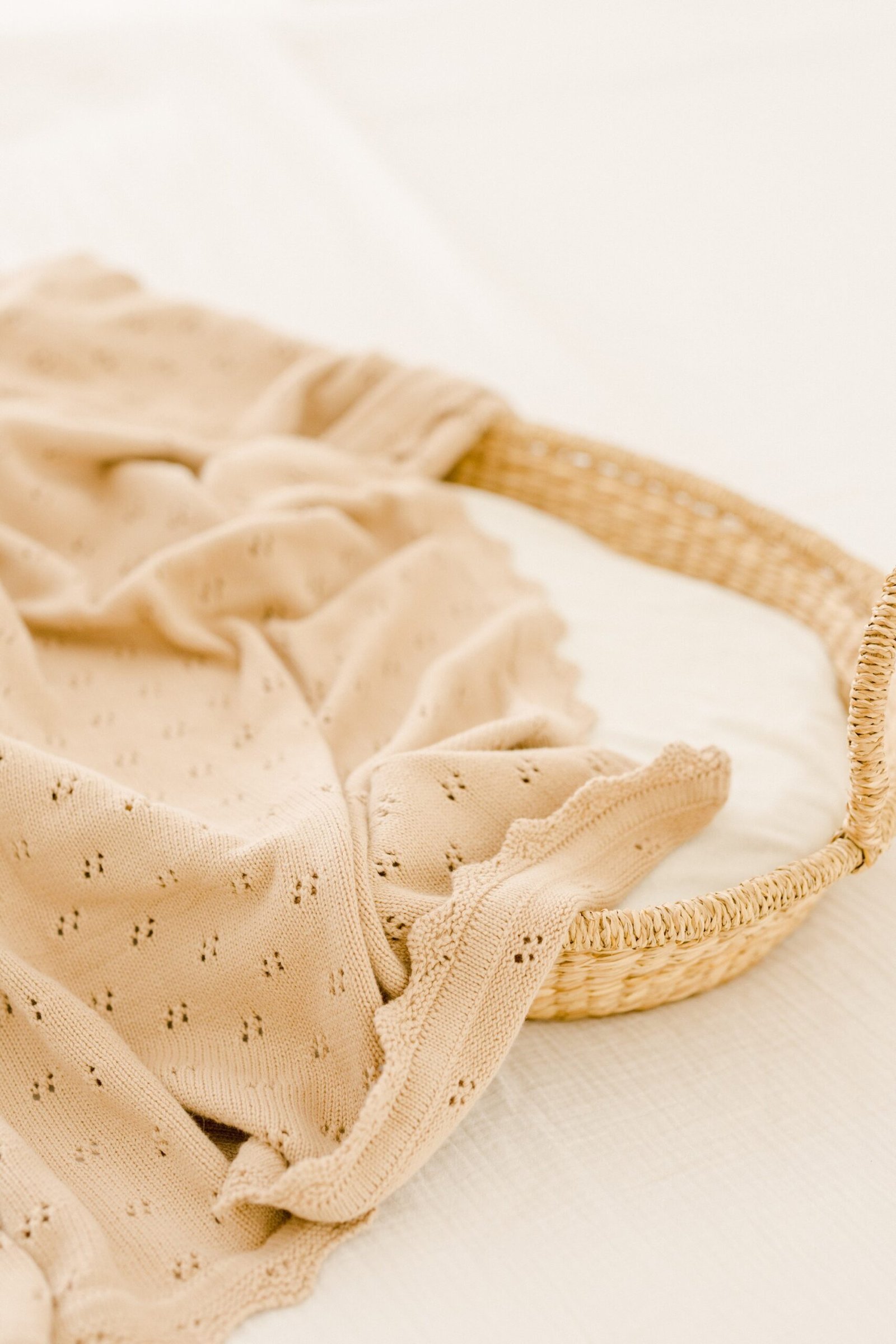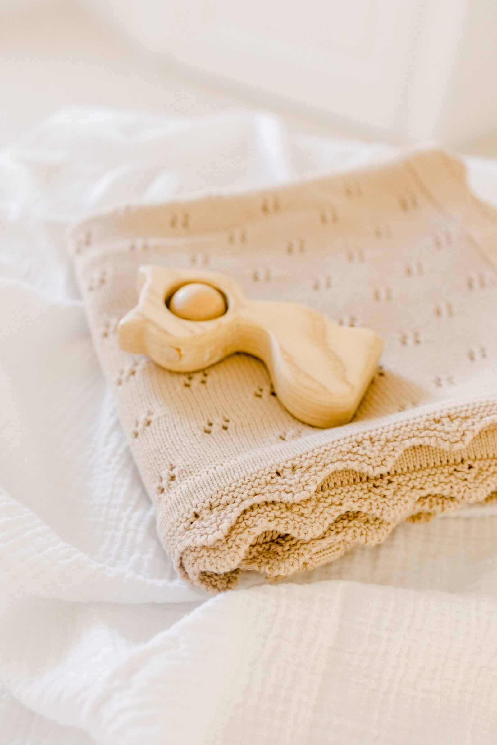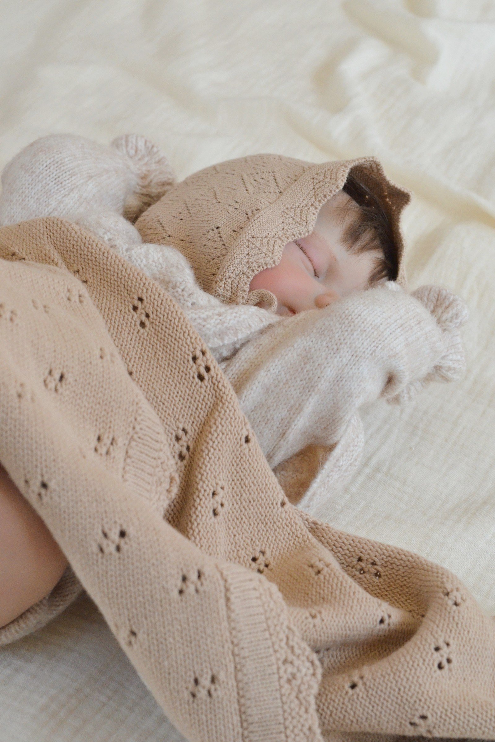 Grande couverture bébé tricotée taupe 100% coton BIENVENUE AU MONDE
