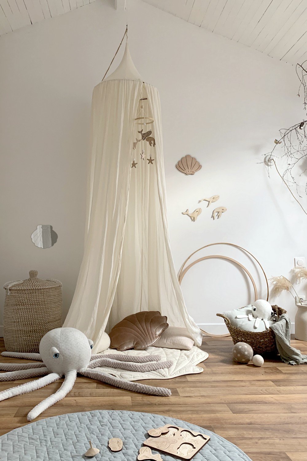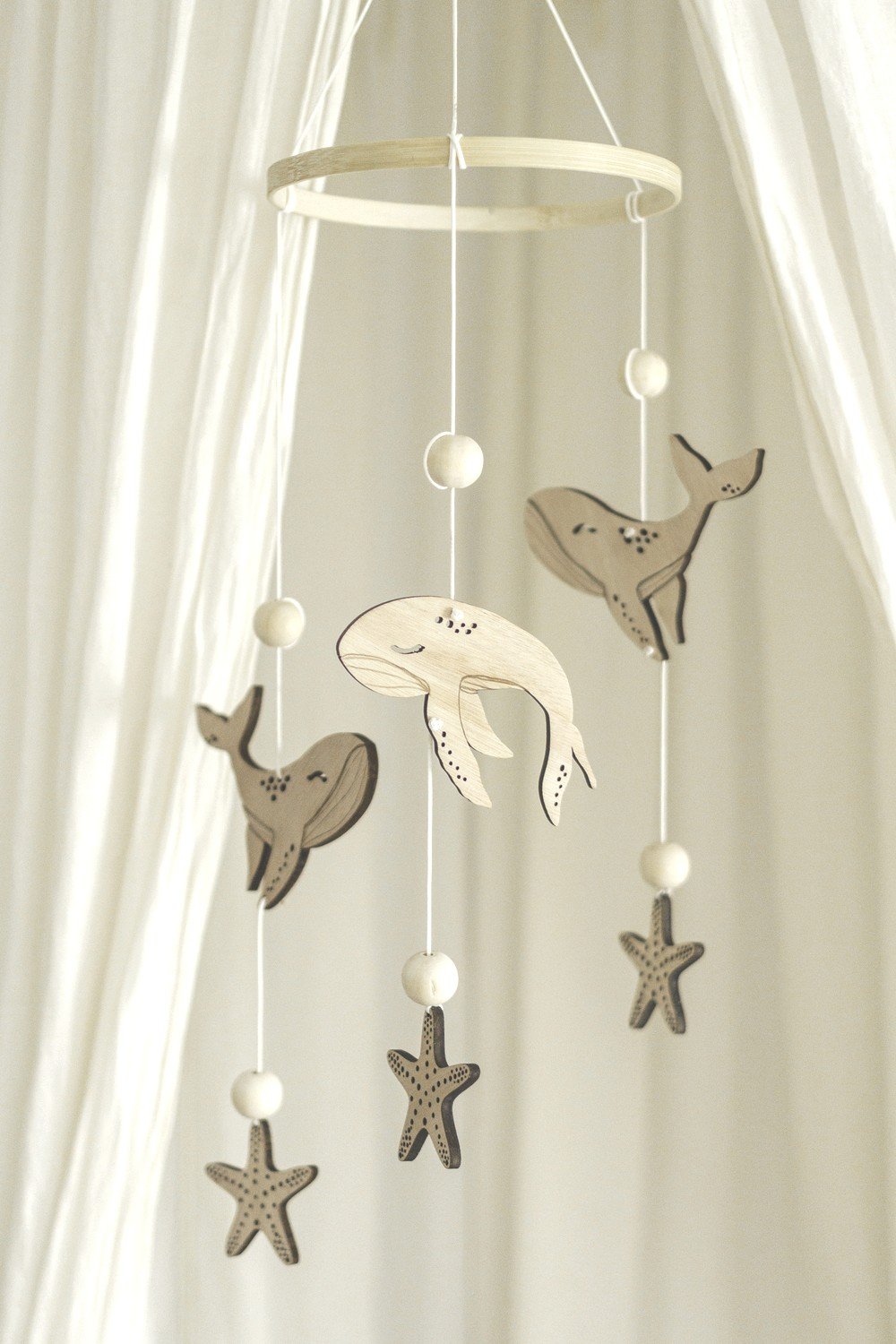 Dans la chambre de votre bébé, le chant des baleines résonne tendrement. Au coeur de ce mobile poétique, une présence bienveillante pour votre tout-petit.