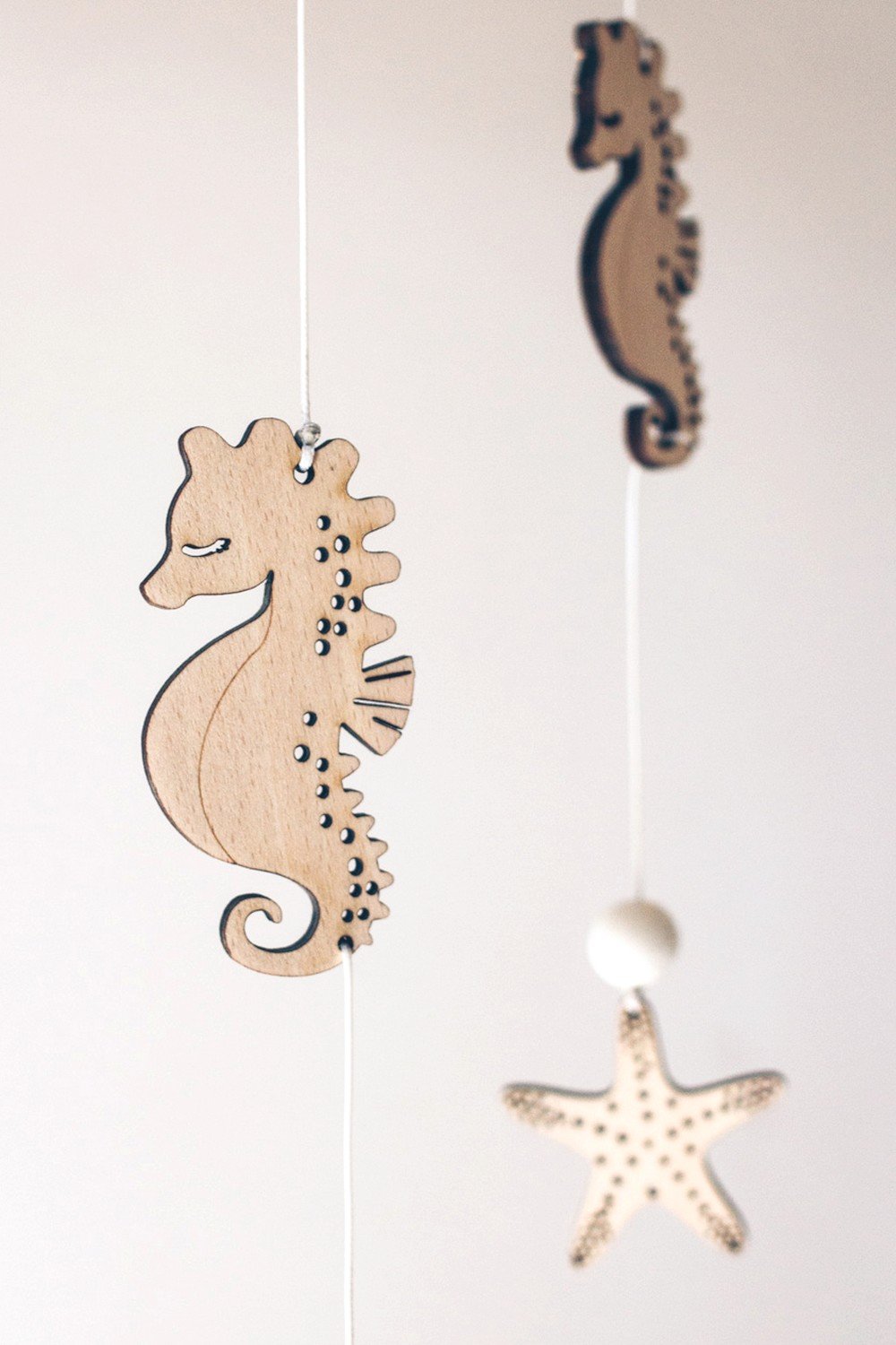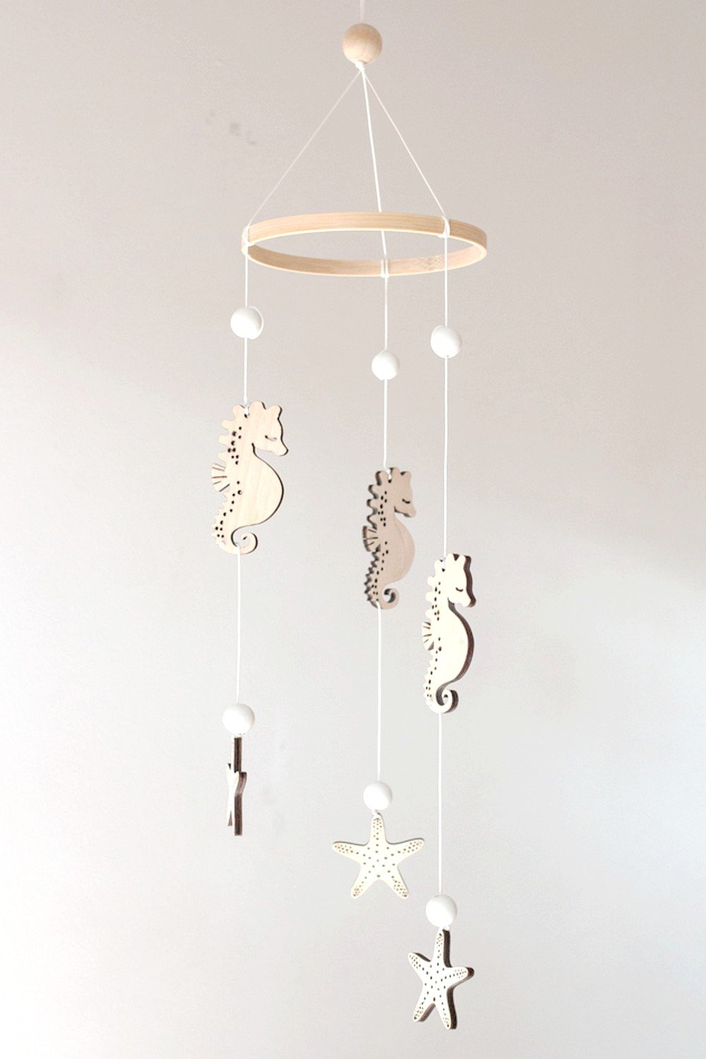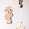 Suspendus dans les airs, hippocampes et étoiles de mer dansent avec grâce. Un mobile qui invite à l’évasion créant un cocon poétique dans la chambre de votre tout-petit. Il accompagnera votre bébé vers des rêves paisibles, au rythme lent de l’océan.