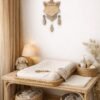 Renard totem veille, porteur de sagesse, il est le gardien silencieux de l’enfance. Cette suspension en bois habillera avec poésie la chambre de bébé et fera rêver petits et grands.