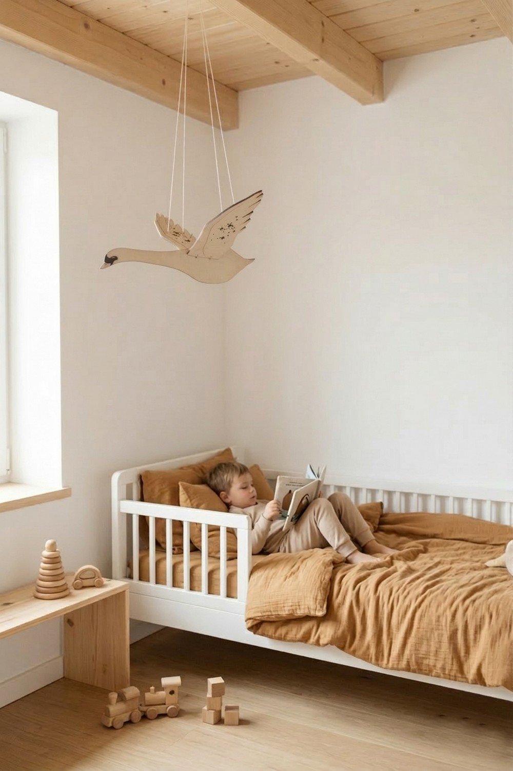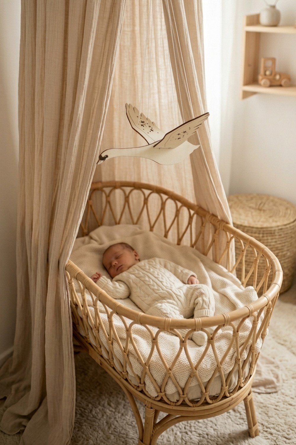 Dans la chambre de votre bébé, sa majesté le cygne, gardien élégant des nuits paisibles. Un mobile majestueux et élégant qui fera rêver petits et grands.