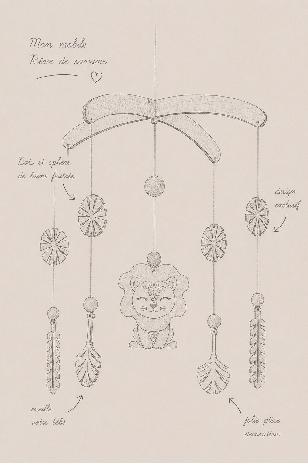 Symbole de courage et de protection, le lion observe en silence, gardien bienveillant des premiers sommeils. Notre mobile de bois Rêve de savane enveloppera la chambre de votre bébé d’une atmosphère chaleureuse et rassurante.