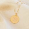 Notre pendentif personnalisé rond gravé d’une initiale et recouvert d’or 18 carats se personnalise avec vos précieux mots doux sur son verso.